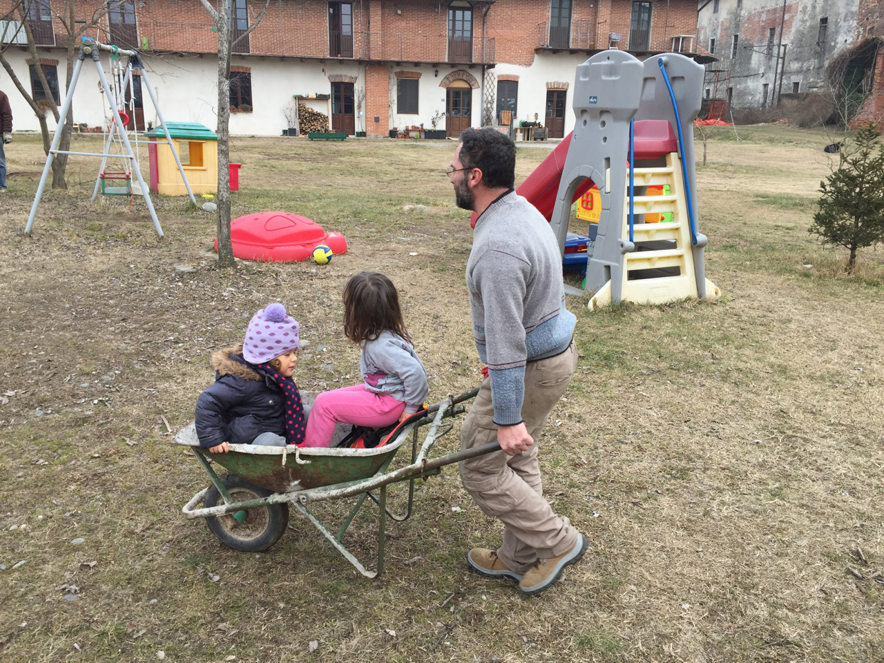 • trasporto bimbi nella carriola